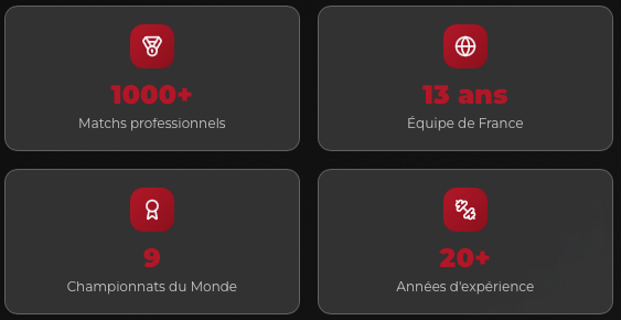 Ancien joueur international de hockey sur glace français, j'ai joué dans 7 pays, disputé 9 Championnats du Monde avec l'équipe de France et accumulé plus de 1000 matchs professionnels. Aujourd'hui, je transmets cette expérience aux hockeyeurs qui veulent s'entraîner au niveau supérieur.
